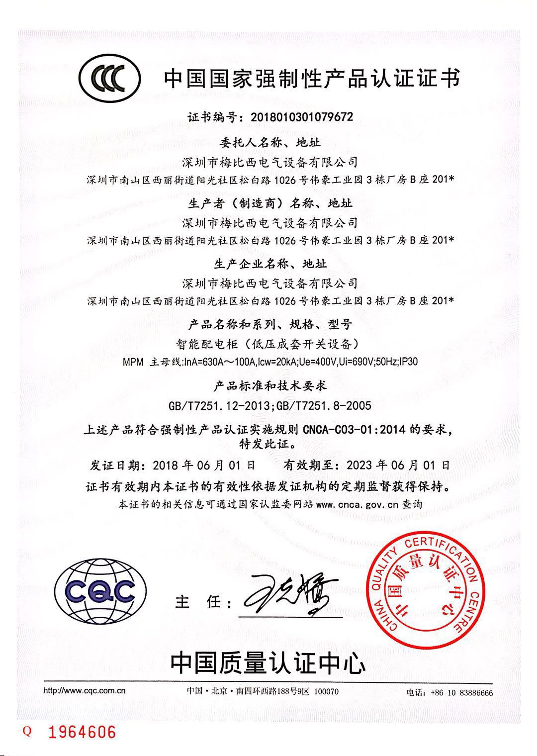 产品获得CQC/CE/EMC认证及IS09001/14001/45001/售后服务体系认证